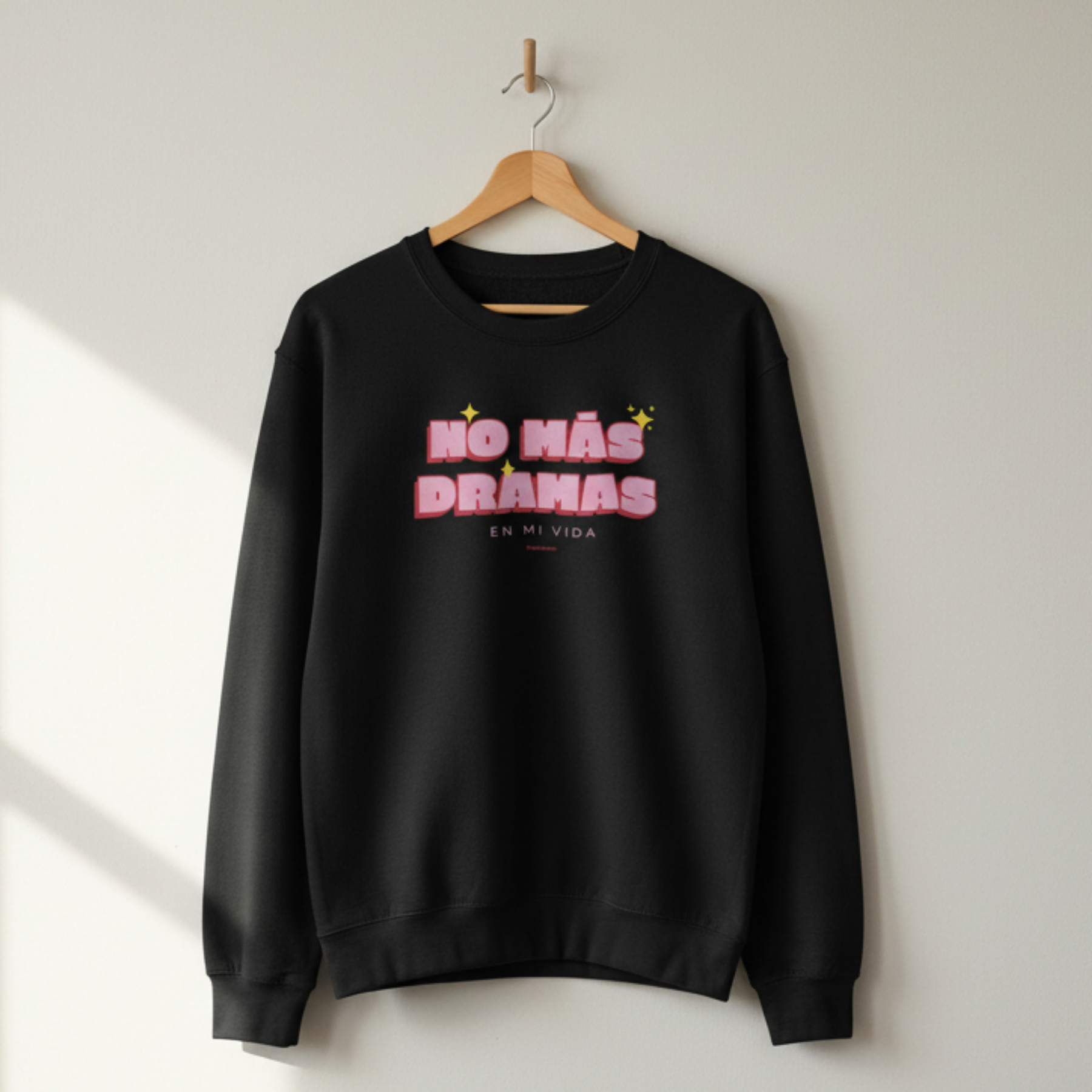 La sudadera No más dramas en mi vida es la prenda oficial de las que ya no están para excusas, conversaciones eternas ni energías raras. Una declaración de intenciones con tipografía bonita y cero rodeos.